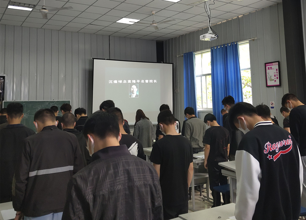 上课的学生在教室静立默哀