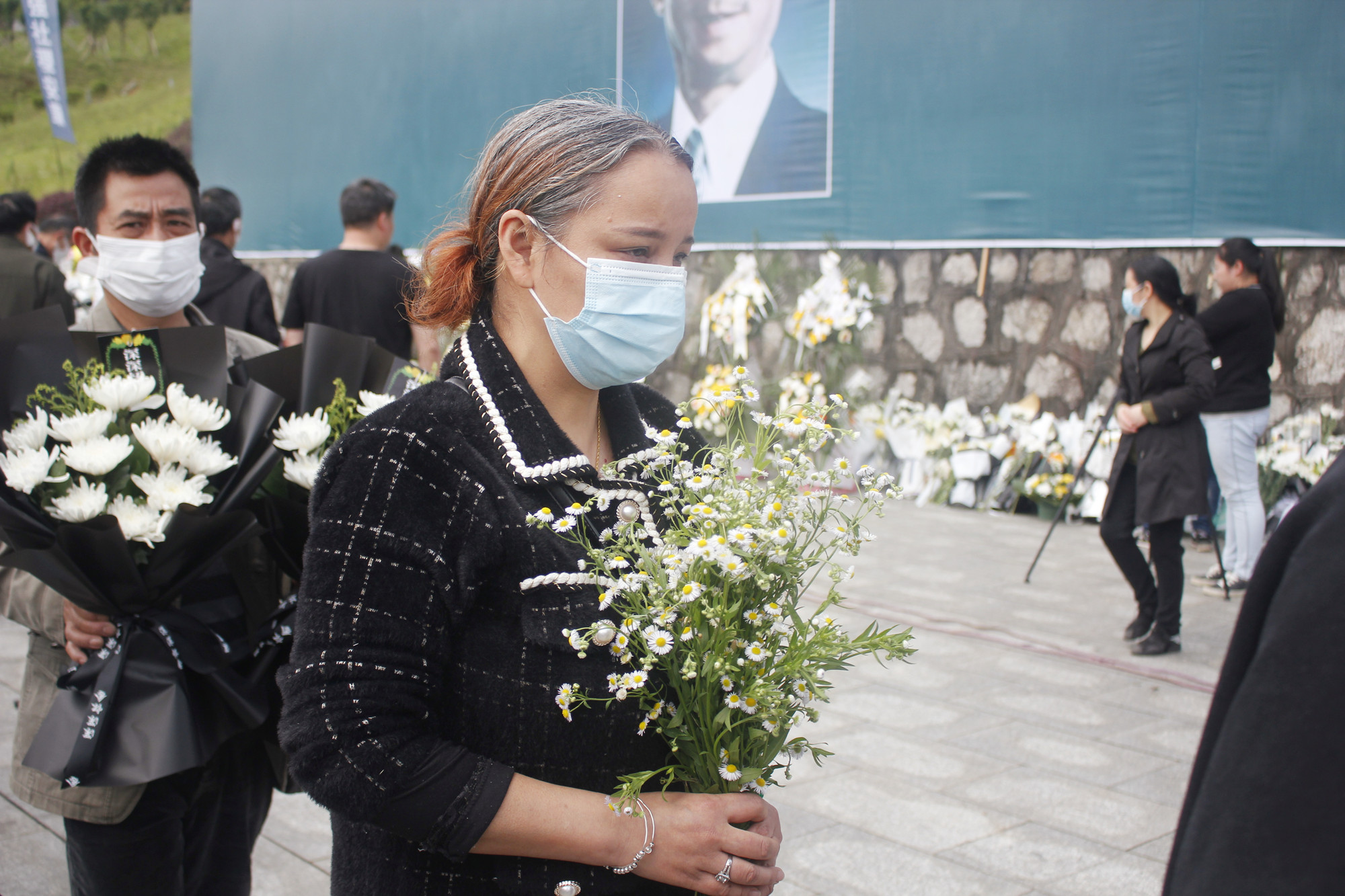 随后全体人员纷纷向前,取下胸花,放置在袁老师的遗像前,共悼逝者,寄托哀思。