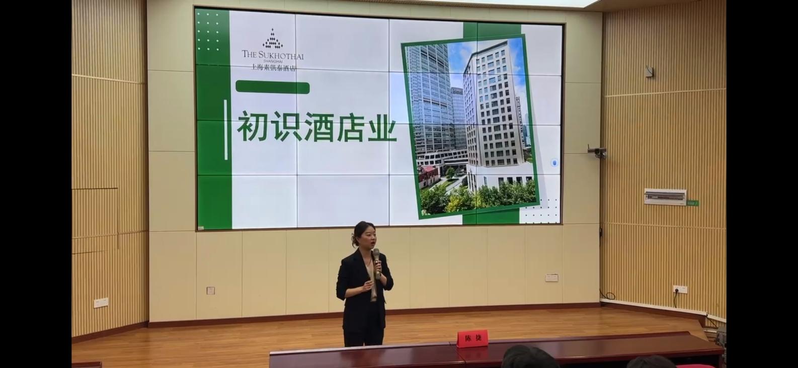 上海素凯泰酒店培训经理陈捷以《企业导师进课堂——上岗前认知课》为题,给2023级民宿运营管理专业的同学们上了一堂精彩的职业规划课程。陈捷老师结合自身的专业知识和实践经验,将课程理论与实践相结合,讲解了行业前沿的知识,让学生们对所学专业有更深入的认识和理解。