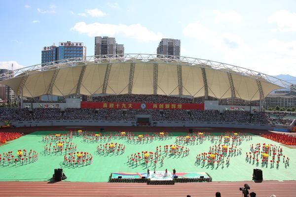 9月26日上午,我院组织5000余名学子参加了怀化市第五届运动会开幕式,由920名怀职学子参演的开幕式节目《奋进》受到了与会领导的高度评价和现场观众的热烈欢迎。