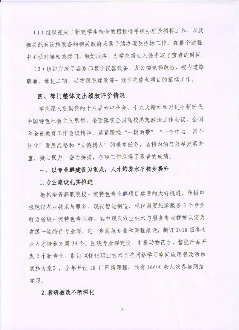 2018年部门整体支出绩效评价报告