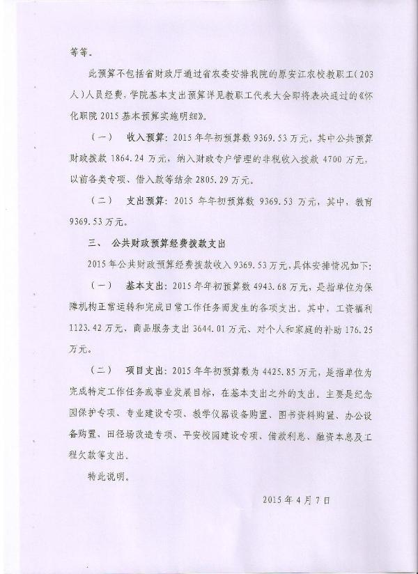 怀化职业技术学院2015年部门预算说明