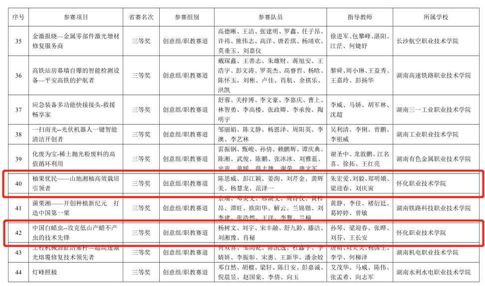 近日,湖南省教育厅公布了“建行杯”第九届湖南省“互联网+”大学生创新创业大赛获奖名单,我校共获金奖2项、银奖2项、铜奖2项,“优秀创新创业导师”10名,优秀组织奖2项。获奖数量、优秀创新创业导师数量创历史新高。
