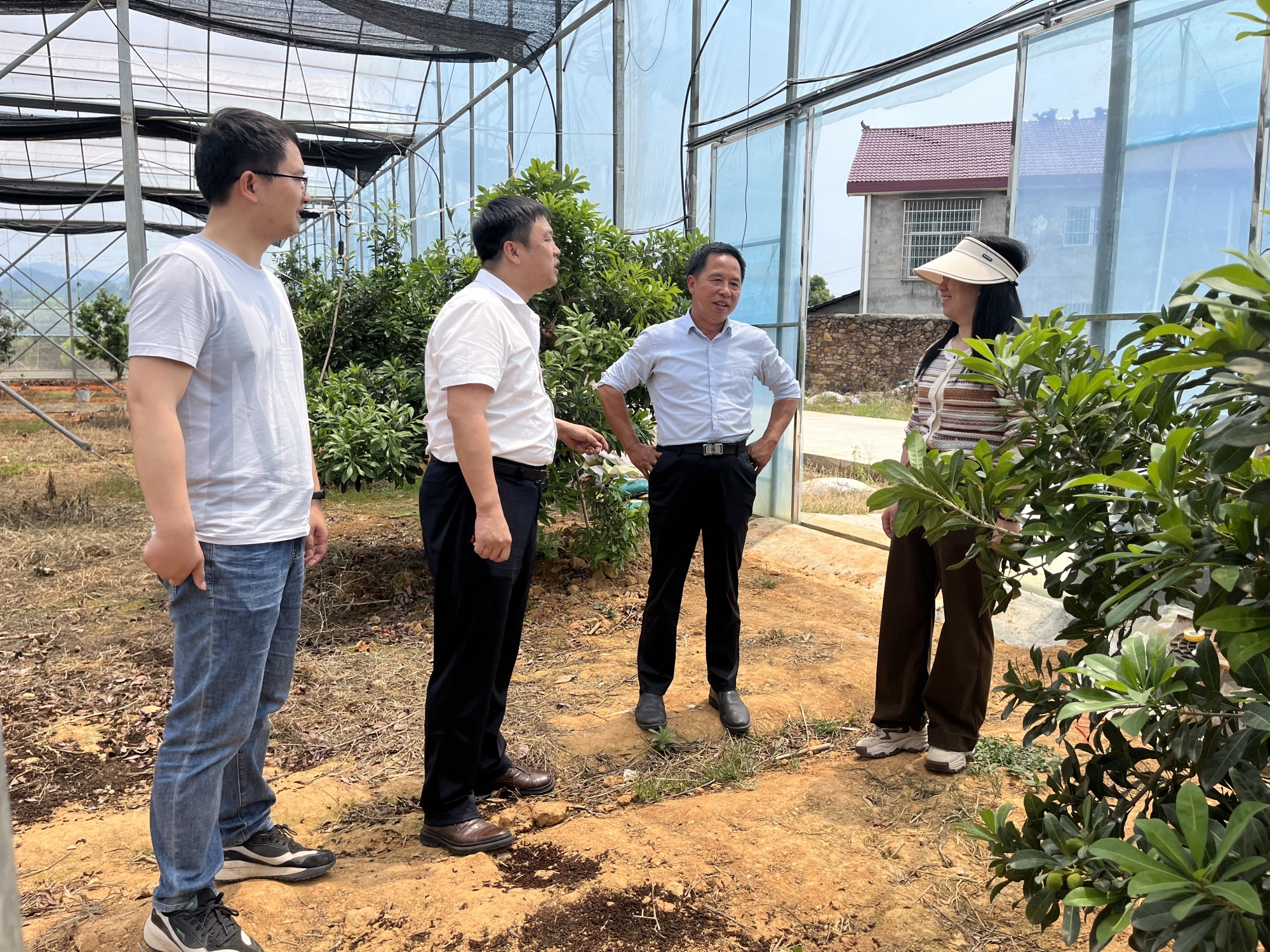 在梅园新村果业有限公司,科技服务团专家王志强、钟卫鹏、潘斌、覃婷婷现场查看了设施栽培杨梅生长状况以及智慧大棚建设运营状况,建议进一步加强杨梅新品种的选育和冷链运输建设工作,注重杨梅品牌文化宣传与打造,促进靖州杨梅产业高质量发展。